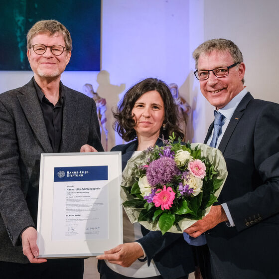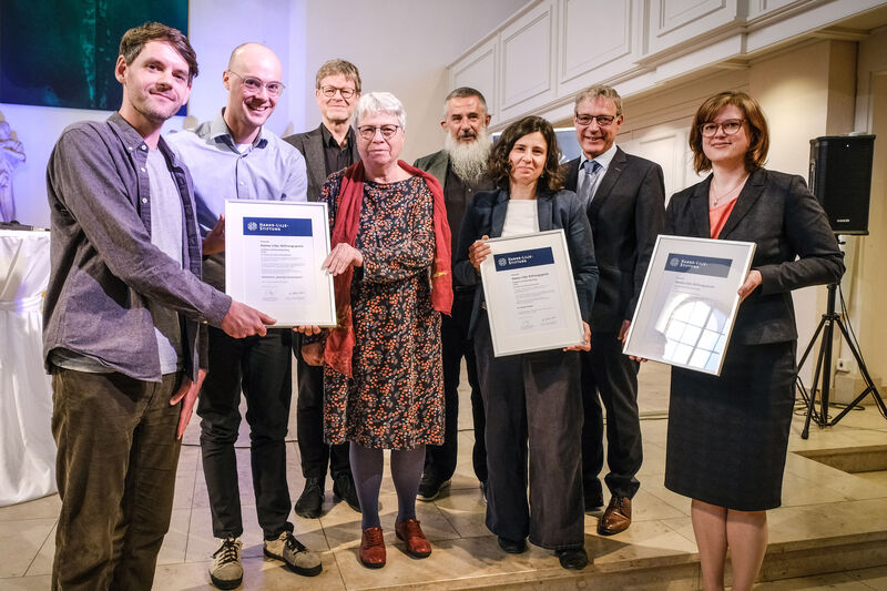 Die Preisträger Dr. Nicole Kunkel, Prof. Dr. Lisanne Teuchert und der „Arbeitskreis ‚Koloniale Kontinuitäten‘“ (alle Fotos: Jens Schulze)